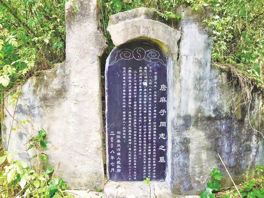 在旬陽市雙河鎮(zhèn)卷棚村老火紙場,一個(gè)小地名叫做椅子灣的對面黃土梁上,安葬著一位當(dāng)?shù)卮迕窨诳谙鄠鳎瑐髁艘惠呌忠惠,每一輩人都只知道這座無名烈士墓的墓主人,外號叫“詹麻子”,至于他是哪里人,生于何時(shí),犧牲時(shí)多大,有無兄弟姐妹與妻兒等,現(xiàn)如今仍無人知曉。