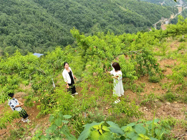 種植基地位于馮山村后山的山頂,2018年,在外承包工程的陳顯攀帶著一腔熱情回鄉(xiāng)創(chuàng)業(yè),流轉(zhuǎn)土地200余畝,種植水蜜桃和黃桃,經(jīng)過幾年發(fā)展,如今桃樹滿山,蜜桃滿枝。蜜桃接連成熟,前兩批銷路一直很好,第三批黃桃集中成熟的時(shí)候,由于天氣炎熱、路途較遠(yuǎn)、果子成熟期短,加之連日的強(qiáng)降雨,出現(xiàn)了銷售難。“如果賣不出去,掉在地上爛了,就會(huì)損失10多萬元。”陳顯攀一家人心急如焚。
