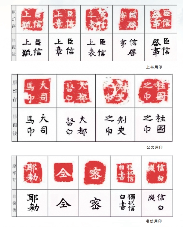 我們不難想象,才華橫溢的獨(dú)孤信被國家委以重任,身兼數(shù)職,每天軍政各項(xiàng)事務(wù)纏身,每件奏表、公文、信札都要蓋章鈐印,于是這位“好自修飾,服章有殊于眾”的“獨(dú)孤郎”便發(fā)揮自身天才般的創(chuàng)造力,將不同場(chǎng)合使用的印文集合一處,雕琢了這枚亙古未有的組印。