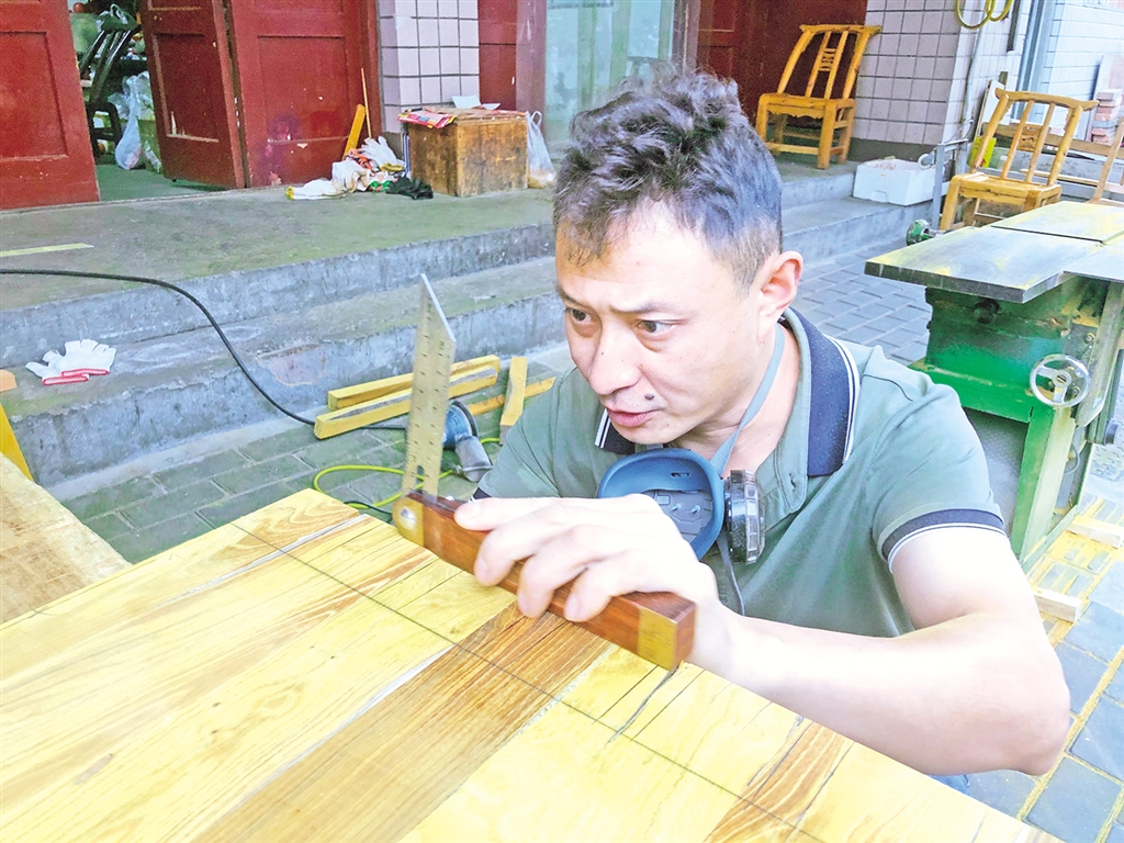 隨著工業(yè)化的發(fā)展,現(xiàn)在定做全套家具的人少了,更多的是做一些長(zhǎng)條桌、馬扎、靠背椅子、菜墩子等等,像鼓樓西、東關(guān)一些傳統(tǒng)老字號(hào)餐飲店里用的就是馬金平做的桌椅,看起來古樸、坐起來舒服。