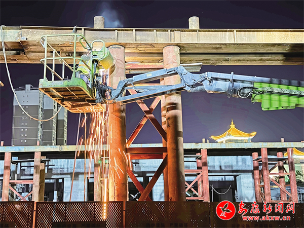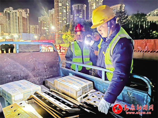 11月25日晚,工程人員檢查橋梁部件。CQy安康新聞網(wǎng)