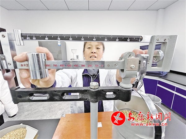 實驗質(zhì)檢員利用糧食扦樣器、取樣容器、分樣器、容重器、鏡紅外谷物分析儀、面筋儀、電動選篩、真菌毒素檢測儀器等一系列設(shè)備對扦取的樣品進(jìn)行了質(zhì)量和儲存品質(zhì)檢驗,針對小麥水分、容重、不完善粒、雜質(zhì)、真菌毒素等項目進(jìn)行常規(guī)檢查。