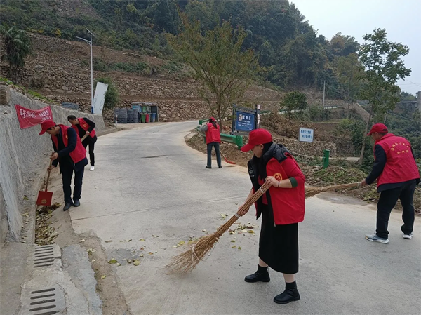 瀛湖鎮(zhèn)王巖村黨員干部、公益崗人員對主干道路進(jìn)行清掃