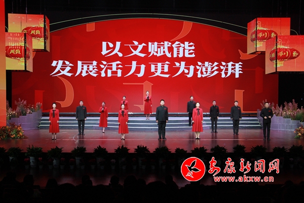 本次團(tuán)拜會(huì)共分為“向光而行”“一路繁花”“萬(wàn)象更新 ”三個(gè)篇章。活動(dòng)在開場(chǎng)歌舞《我們的新時(shí)代》中拉開帷幕,由全市宣傳思想文化系統(tǒng)各單位帶來(lái)的舞蹈、快板舞、歌舞串燒、小品、民歌聯(lián)唱等各類精彩節(jié)目輪番上演,宣講《在習(xí)近平文化思想指引下》、情景劇《高高的山上》等特色節(jié)目,生動(dòng)展示了安康牢記囑托、砥礪奮進(jìn)的生動(dòng)局面;歌曲串燒《最初的夢(mèng)想》《一起出發(fā)》、情景聯(lián)唱《我愛我的家》鼓舞大家奔向安康文化事業(yè)發(fā)展新征程,共同創(chuàng)造更加美好的明天;小品《老劉過(guò)生》《管不管》、情景音詩(shī)畫《傳承》、情景歌舞《村BA我的主場(chǎng)》等節(jié)目展示了我市廣大干部群眾扎根基層顯擔(dān)當(dāng)、開展傳統(tǒng)文化保護(hù)以及發(fā)展縣域經(jīng)濟(jì)等方面的新做法、新成效。團(tuán)拜會(huì)現(xiàn)場(chǎng)高潮迭起、掌聲不斷,在合唱《歌唱祖國(guó)》中落下帷幕。