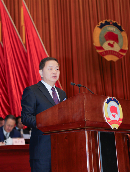 市政協(xié)主席周建功代表政協(xié)安康市第五屆委員會常務(wù)委員會作工作報告。記者 陸青波 攝