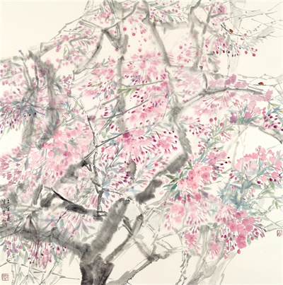 記者:您的花鳥畫在傳統(tǒng)基礎(chǔ)上融入了許多現(xiàn)代元素,能否具體談?wù)勀侨绾卧诶^承傳統(tǒng)與創(chuàng)新之間找到契合點的?在寫意與寫實、傳統(tǒng)與現(xiàn)代、具象與抽象之間,您更傾向于追求哪一方面的表現(xiàn)?