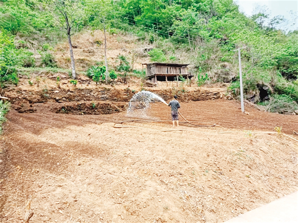 4月25日,平利縣長安鎮(zhèn)金沙河村安排運(yùn)輸投送農(nóng)業(yè)生產(chǎn)用水,對(duì)500畝烤煙幼苗進(jìn)行灌溉。胡鈴鈴 攝
