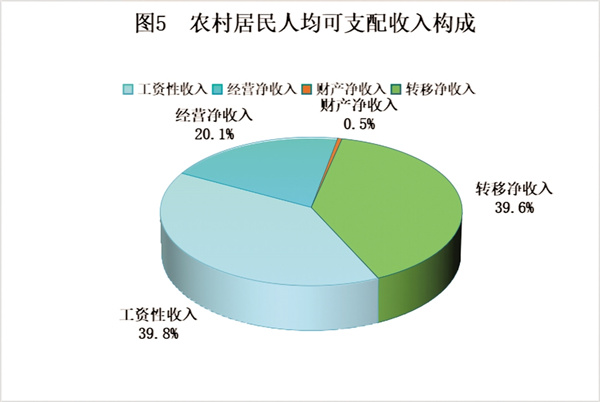 全市農(nóng)村居民人均可支配收入15434元,比上年增加1031元,增長7.2%。其中,工資性收入6149元,增長7.1%,占可支配收入的比重為39.8%;經(jīng)營凈收入3104元,增長6.0%,占比20.1%;財(cái)產(chǎn)凈收入77元,增長12.5%,占比0.5%;轉(zhuǎn)移凈收入6104元,增長7.8%,占比39.6%。