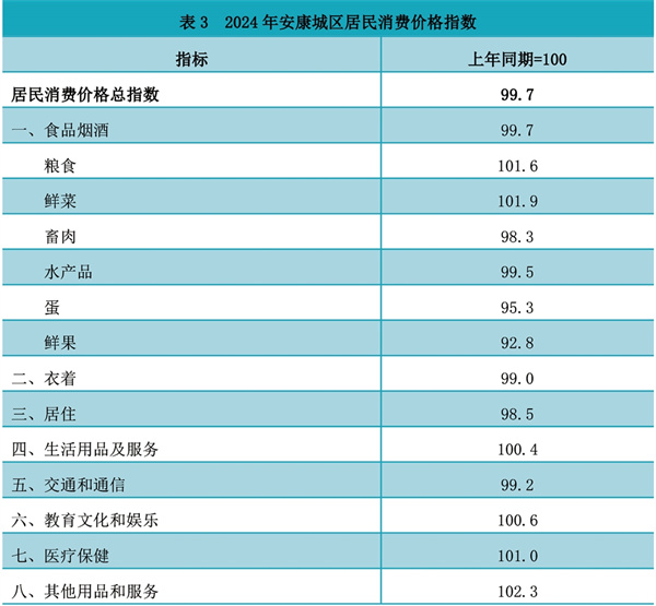 2024年,安康城區(qū)居民消費(fèi)價格比上年下降0.3%。