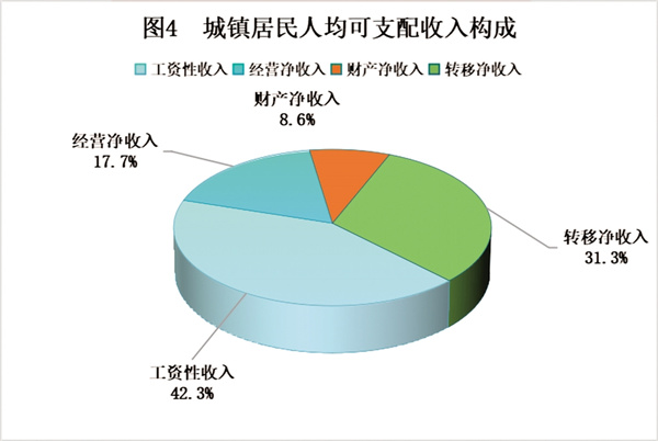 全市城鎮(zhèn)居民人均可支配收入35313元,比上年增加1674元,增長5.0%。其中,工資性收入14954元,增長5.5%,占可支配收入的比重為42.3%;經(jīng)營凈收入6264元,增長4.5%,占比17.7%;財(cái)產(chǎn)凈收入3028元,增長4.1%,占比8.6%;轉(zhuǎn)移凈收入11067元,增長4.9%,占比31.3%。