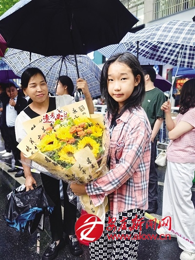 fed安康新聞網(wǎng) 6月7日上午,安康中學(xué)考點外妹妹正手捧鮮花等待完成第一場考試的姐姐。 鄭時根 攝fed安康新聞網(wǎng)