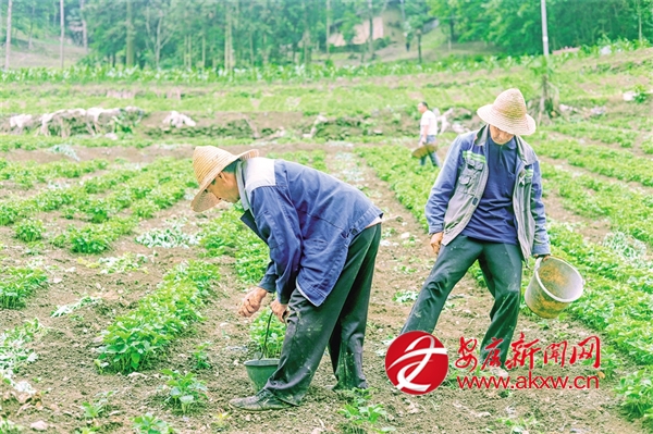 近日,雨后的嵐皋縣藺河鎮(zhèn)蔣家關村牡丹花育苗基地里,村民們正忙著給牡丹花苗除草、施肥。 邱苗 攝