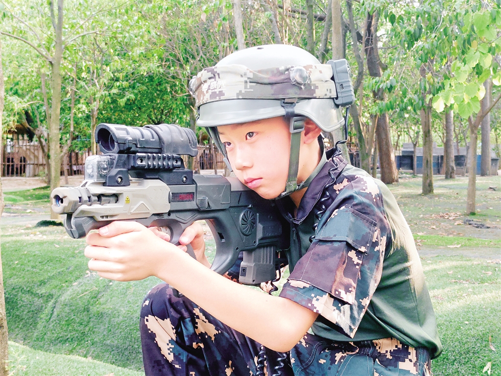 訓(xùn)練場(chǎng)上,30多位身姿挺拔的退伍軍人擔(dān)任教官。匕首操練習(xí)中,教官細(xì)致糾正每個(gè)握姿;擒敵拳的動(dòng)作在口號(hào)聲中虎虎生風(fēng);真人CS戰(zhàn)區(qū)硝煙彌漫,孩子們分組“激戰(zhàn)”,在掩體間穿梭配合;5公里拉練,小個(gè)子被大哥哥牽著,無(wú)人掉隊(duì);火箭筒體驗(yàn)區(qū)前,扣動(dòng)扳機(jī)的瞬間,歡呼聲直沖云霄。