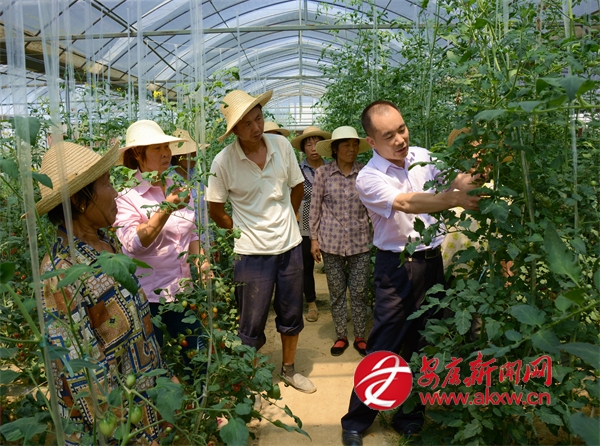 忠誠(chéng)村黨支部書記劉瑞紅現(xiàn)場(chǎng)給村民講解如何修剪圣女果