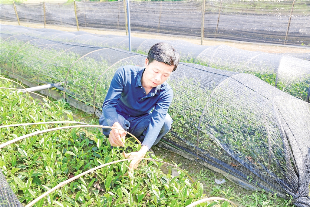 王衍成查看茶苗長勢