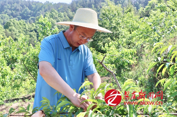 陜煤集團派駐漢陰縣雙河口鎮(zhèn)幸和村第一書記高勇正在給桃樹套袋