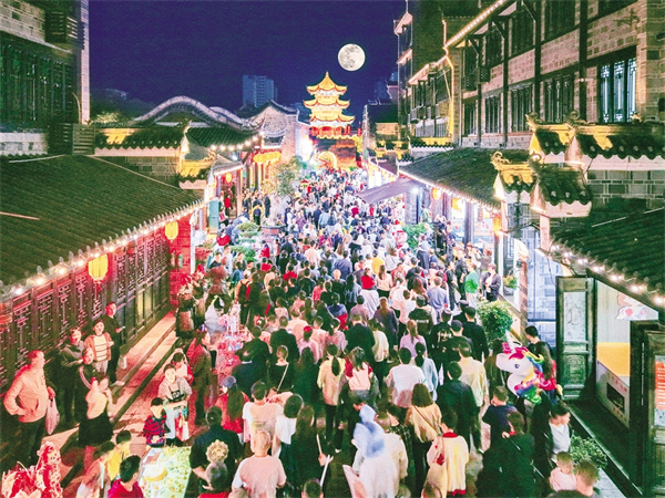 國慶期間,漢陰縣雙河口古鎮(zhèn)以“長(zhǎng)安荔枝道,古韻雙河口”為主題,推出了一系列沉浸式文旅活動(dòng)。 王建霞 攝