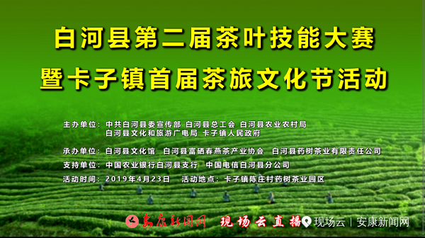 本網(wǎng)訊 4月23日上午,白河縣第二屆茶葉技能大賽暨卡子鎮(zhèn)茶旅文化節(jié)活動在該縣陳莊村茶樹茶葉園區(qū)舉行。安康新聞網(wǎng)對本次技能大賽進行全程直播和實時報道。直播地……