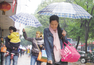 安康新網(wǎng)訊(安康日?qǐng)?bào))通訊員 王琳 記者 潘潤(rùn)生 文/圖:“昨天30多度穿短袖,今天出門得穿夾克!”在安康金州路逛街的陳女士一手撐著傘,一手收緊大衣領(lǐng)口告訴記……