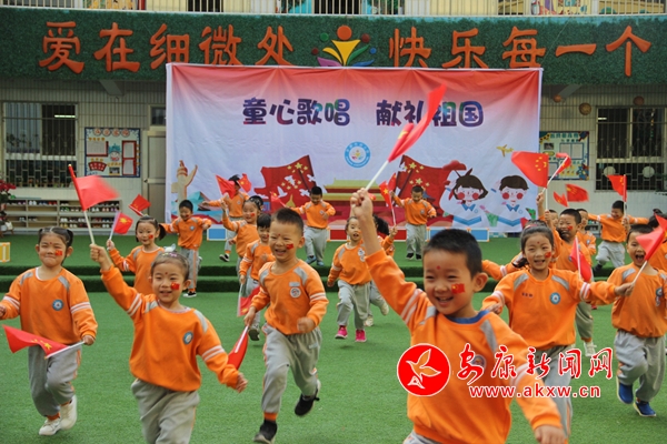 隨后,“我愛北京天安門”、“大中國(guó)”、“祖國(guó)祖國(guó)我愛你”、“紅星閃閃”稚嫩的歌聲、生動(dòng)的表演,表達(dá)了孩子們對(duì)祖國(guó)70華誕的美好祝福;“一二一”“立正”“稍息”“向右看齊”挺拔的軍姿、整齊的動(dòng)作、剛勁的一招一式,贏得了老師和小朋友們陣陣掌聲和歡呼聲,將活動(dòng)不斷推向高潮。