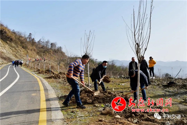 本網(wǎng)訊(通訊員 陳本利)陽春三月、萬物復(fù)蘇。3月11日上午,平利縣城關(guān)鎮(zhèn)紙坊溝村新修的泊油路沿線,全縣各黨政機(jī)關(guān)、企事業(yè)單位干部職工一字?jǐn)[開,有的扶樹、有的鏟土、有的澆水,平利縣2020年春季義務(wù)植樹活動(dòng)正歡快的氣氛中有序開展。在大家精心栽植下,一株株櫻花精神抖擻的挺立在路旁,將這條通村公路裝扮的煥然一新。同樣義務(wù)植樹綠化美化公路的場景在廣佛鎮(zhèn)塘坊村、西河鎮(zhèn)段家河村、長安鎮(zhèn)公路沿線同時(shí)展現(xiàn)。