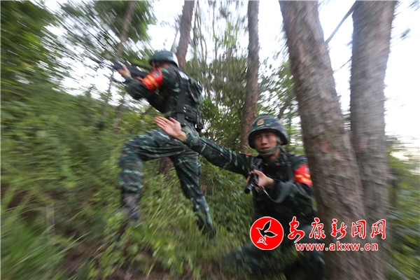 本網(wǎng)訊(通訊員 趙坤)“接上級(jí)通報(bào),3號(hào)區(qū)域發(fā)現(xiàn)4名可疑分子蹤跡,上級(jí)要求你特戰(zhàn)分隊(duì)迅速追擊,予以殲滅!”連日來,武警陜西總隊(duì)第二片區(qū)魔鬼周極限訓(xùn)練在安康地域展開。山地追擊現(xiàn)場(chǎng),特戰(zhàn)隊(duì)員面對(duì)山林地的特殊地形,沖山坡、穿毒障、鉆密林,觀察地面踩踏的痕跡、潛聽樹林中的動(dòng)靜,采取多種戰(zhàn)法靈活應(yīng)對(duì)。
