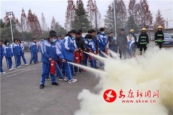 隨后,在籃球場進行了如何正確使用滅火器撲滅火源的操作方法演示,同學們仔細聆聽,牢記每一個步驟,認真學習掌握滅火器的使用方法:提、拔、握、拉。并有序上前,進行了滅火器滅火的實踐操作,大家齊心協(xié)力瞬間將一盆大火撲滅。