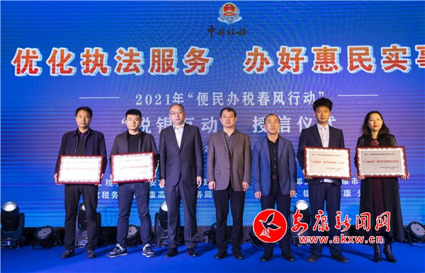 本網(wǎng)訊(通訊員 付明明 張小松)春風(fēng)拂面,稅意暖心。4月1日上午,安康高新區(qū)萬(wàn)達(dá)廣場(chǎng)內(nèi),在安康市稅務(wù)局聯(lián)合高新區(qū)稅務(wù)局和金融、企業(yè)代表共同舉辦的第30個(gè)全國(guó)稅收宣傳月暨2021年“便民辦稅春風(fēng)行動(dòng)”啟動(dòng)儀式上,隨著安康市稅務(wù)局局長(zhǎng)張大峰、高新區(qū)管委會(huì)副主任楊凱,安康市稅務(wù)局總會(huì)計(jì)師汪顯鳳,高新區(qū)稅務(wù)局局長(zhǎng)呂世意和安康萬(wàn)達(dá)廣場(chǎng)商業(yè)管理有限公司總經(jīng)理田玲共同按動(dòng)啟動(dòng)球,以“稅收惠民辦實(shí)事、深化改革開新局”為主題的稅收宣傳月活動(dòng)正式開啟。