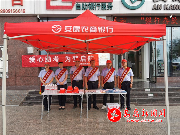 本網(wǎng)訊(通訊員 張。“乘風(fēng)破浪會(huì)有時(shí),直掛云帆濟(jì)滄海”。又是一年高考季,6月7日,2021年的高考拉開(kāi)帷幕,無(wú)數(shù)莘莘學(xué)子邁入考場(chǎng),迎戰(zhàn)人生中重要的一次考試。安康農(nóng)商銀行江北支行心系學(xué)子、奉獻(xiàn)真情,積極組織員工開(kāi)展“愛(ài)心助考”活動(dòng)。上午七時(shí),行長(zhǎng)帶領(lǐng)支行員工來(lái)到位于江北高級(jí)中學(xué)考點(diǎn)附近搭建帳篷,為廣大考生及家長(zhǎng)免費(fèi)發(fā)放礦泉水、防曬帽等用品,用實(shí)際行動(dòng)傳遞暖心服務(wù)。