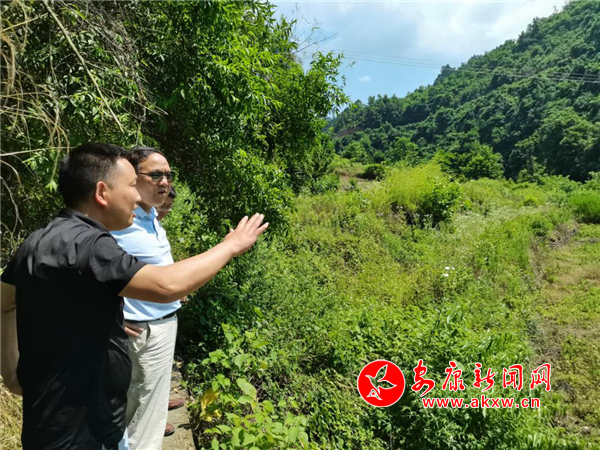 屈書記查看社區(qū)茶園,鼓勵要精心發(fā)展茶園建設(shè),增大村民經(jīng)濟收入。