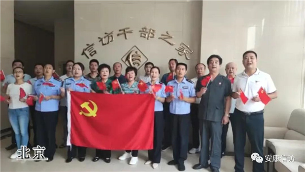 雨后的蔣家坪茶山,空氣清新怡人,市信訪局在家全體黨員干部在這里盡情地揮舞著小紅旗,歌唱《沒有共產黨就沒有新中國》;在北京駐京工作組駐地,在市政府副秘書長、市信訪局長馬霞的帶領下,大家高歌《沒有共產黨就沒有新中國》。雖遠隔千山,但大家用嘹亮動聽的歌聲重溫紅色歷史,匯聚了對黨、對祖國最真摯的情感。