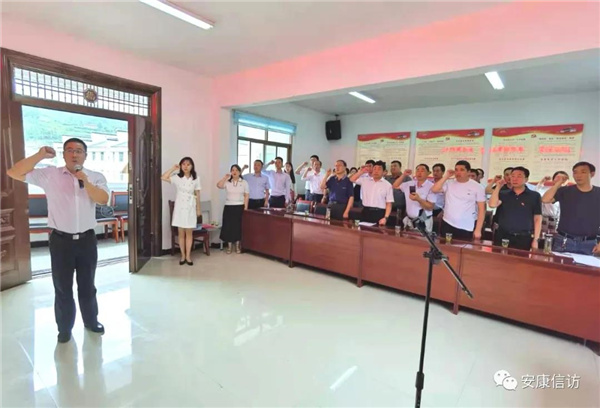6月26日,安康市信訪局黨支部和柳林壩村黨支部共同舉辦“奮進新時代永遠跟黨走”主題黨日活動,喜迎建黨百年。本次主題黨日活動圍繞“講一堂黨課、表彰一批先進、唱一首紅歌、重溫一段黨史、淬煉一次黨性”為題,全體黨員干部唱紅歌、頌黨恩,謳歌黨的百年征程,展現信訪干部積極向上的風貌,激發(fā)奮進新時代的磅礴力量。