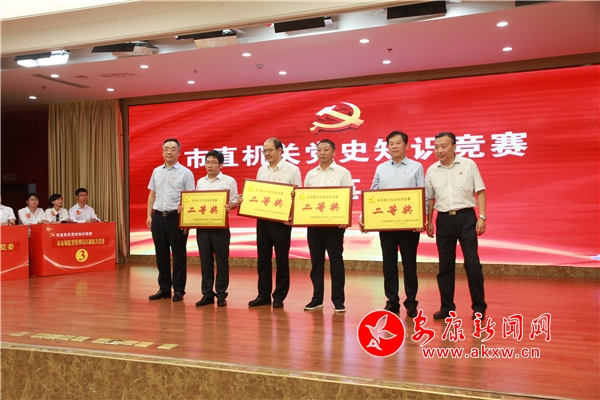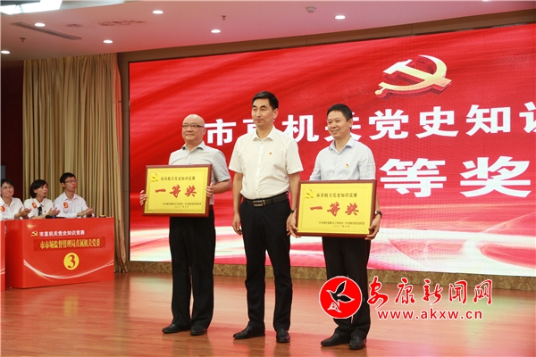 決賽分為個人必答題、團隊共答題、搶答題、風險題四個環(huán)節(jié),通過抽簽的方式確定比賽座次。比賽的過程中,還穿插了觀眾答題互動環(huán)節(jié)。經過緊張的四個環(huán)節(jié)比拼,最終,市委辦機關黨委代表隊、市委黨校機關黨委代表隊榮獲一等獎,市市場監(jiān)督管理局直屬機關黨委代表隊、市住建局直屬機關黨委代表隊、市政府辦機關黨委代表隊、市委政研室機關黨支部代表隊獲得二等獎。