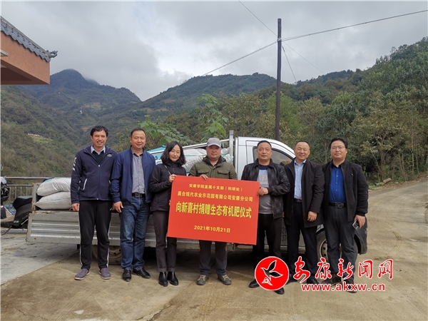 本網(wǎng)訊(通訊員 李景林)10月21日,安康學(xué)院科研處聯(lián)合晨合現(xiàn)代農(nóng)業(yè)示范園有限公司安康分公司向嵐皋縣民主鎮(zhèn)新喜村捐贈生態(tài)有機肥,并建立“綠潤有機肥獼猴桃生態(tài)種植示范基地”。