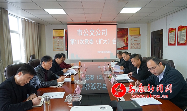 本網(wǎng)訊(通訊員 成忠旭)10月28日,市公交公司召開第十一次黨委(擴(kuò)大)會(huì),認(rèn)真學(xué)習(xí)習(xí)近平總書記來(lái)陜考察重要講話重要指示精神,研究貫徹落實(shí)措施。領(lǐng)導(dǎo)班子成員、有關(guān)部門負(fù)責(zé)人參加會(huì)議。