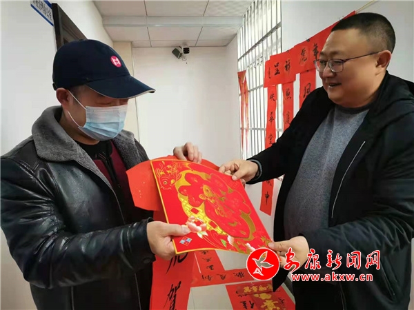 當(dāng)日,在黨校新村小區(qū),市保障性住房管理中心工作人員發(fā)揮自身特長(zhǎng),為保障房小區(qū)住戶義務(wù)寫(xiě)春聯(lián)。