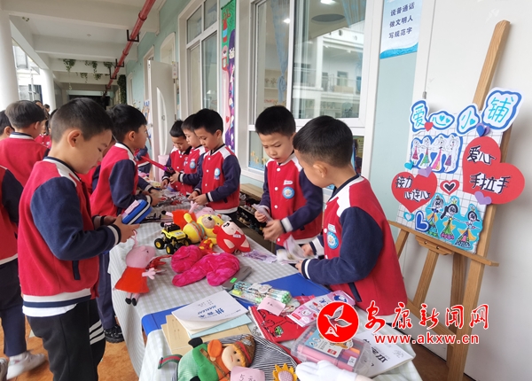 一聲聲稚氣的叫賣、一個個熱鬧的場面、一張張快樂的臉龐,充分展示了“愛心義賣”活動給孩子們帶來的那一份快樂和收獲;顒幼詈,幼兒將自己買到的物品投進愛心捐贈箱,一起用實際行動向福利院小朋友傳遞力量,奉獻愛心,溫暖童心。