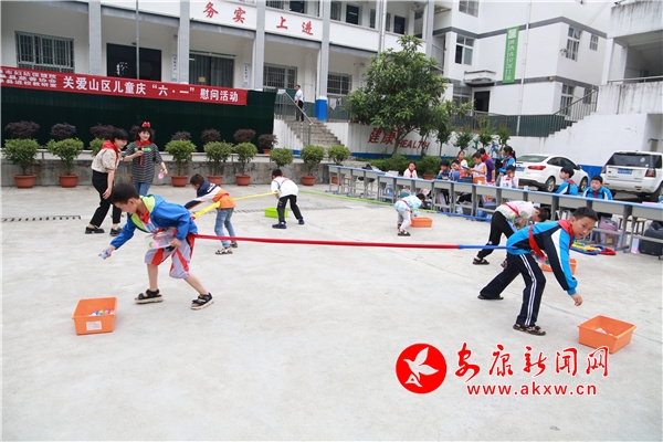 捐贈(zèng)儀式結(jié)束后,正溝小學(xué)師生和市婦幼保健院醫(yī)務(wù)人員開展了聯(lián)誼活動(dòng),通過(guò)“抓尾巴”、“跳跳袋”、“扭扭樂(lè)”、“東西南北跑”等游戲,拉近了師生之間的距離,也讓孩子們體驗(yàn)了游戲的樂(lè)趣和童真。孩子們還一起分享了市婦幼保健院為他們帶來(lái)的蛋糕,大家在一片歡聲笑語(yǔ)中度過(guò)了一個(gè)愉快、難忘的節(jié)日。
