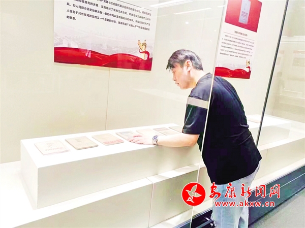 走到《論聯(lián)合政府》的展柜前,唐亞侖停下腳步。“這七冊一套的《論聯(lián)合政府》都是1945年至1948年之間出版的,來自不同出版社,這一套也是目前全國最全的!墩撀(lián)合政府》深刻闡釋了咱們黨的三大作風(fēng),對于奪取抗日戰(zhàn)爭的最后勝利、建立新中國,具有重要意義。”在唐亞侖看來,這些文獻在當年跟著前線作戰(zhàn)轉(zhuǎn)移,經(jīng)歷了戰(zhàn)火與時間的考驗,是歷史的見證者。