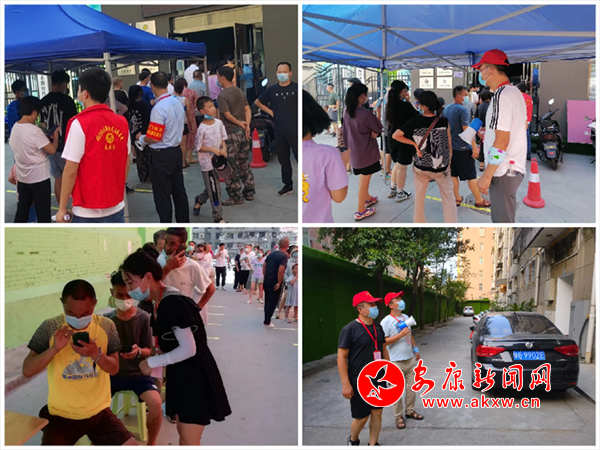 8月16日16時,太陽火辣辣地直射地面,安康市區(qū)街道酷熱難耐。在北門社區(qū)面粉廠家屬院第一輪核酸檢測采樣現(xiàn)場,安康市公路局下沉的5名志愿服務(wù)隊員各司其職、各盡其責,助力核酸檢測高效有序完成。
