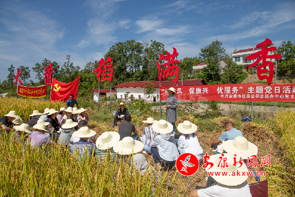 本網訊(記者 張世虎 通訊員 姚澤練)秋日的恒口示范區(qū)大道村,金谷飄香,“豐”景如畫。稻田里,黨旗飄飄,黨徽閃耀,割谷子、打谷子、聽黨課......9月6日,市住房公積金經辦中心黨支部一場別開生面的主題黨日活動在這里開展。