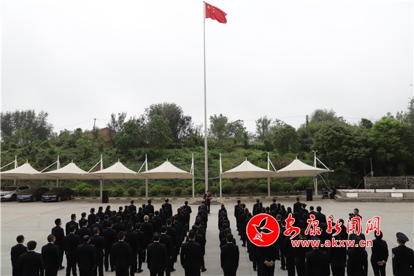 9時(shí)整,升國(guó)旗儀式正式開始。全體干警精神飽滿,整齊列隊(duì),護(hù)旗手邁著矯健的步伐將鮮艷的五星紅旗護(hù)送至升旗臺(tái)。伴隨著雄壯嘹亮的國(guó)歌聲,五星紅旗冉冉升起,全體干警莊嚴(yán)肅立,向國(guó)旗行注目禮。