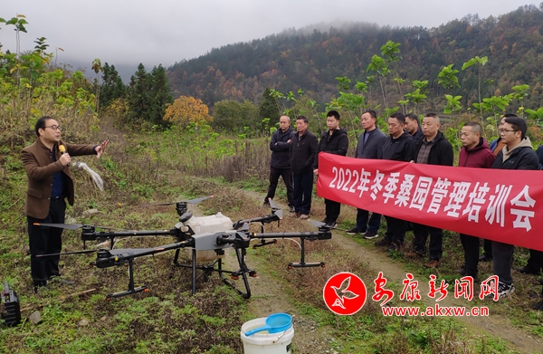 本次作業(yè)優(yōu)選專業(yè)化統(tǒng)防統(tǒng)治公司施工,派出技術專家組全程旁站監(jiān)督漢陰縣觀音河鎮(zhèn)合興村蠶桑專業(yè)合作社、恒口示范區(qū)楊莊社區(qū)昌躍蠶桑養(yǎng)殖農(nóng)民專業(yè)合作社等4個示范點桑園飛防作業(yè),并對縣區(qū)組織現(xiàn)場觀摩蠶桑經(jīng)營主體代表和養(yǎng)蠶大戶開展冬季桑園管理技術示范培訓。