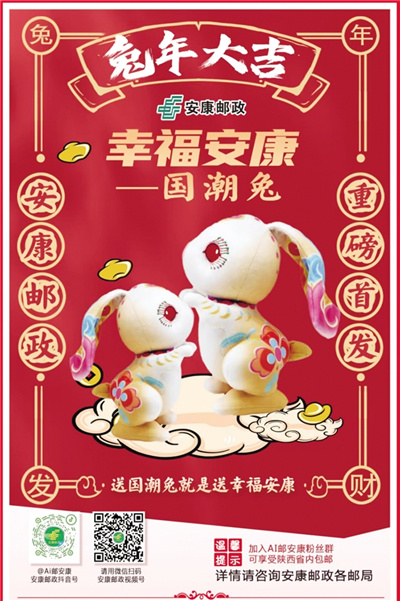 安康毛絨玩具產(chǎn)業(yè)自2017年以來(lái)成為全國(guó)脫貧攻堅(jiān)的典范,現(xiàn)已成為全國(guó)第四大毛絨玩具生產(chǎn)基地。在2023癸卯年到來(lái)之際,為有效將中國(guó)集郵文化與安康毛絨玩具產(chǎn)業(yè)發(fā)展相結(jié)合,將文化資源轉(zhuǎn)化為能看得見(jiàn)、摸得著的文化創(chuàng)意產(chǎn)品,促進(jìn)安康毛絨玩具產(chǎn)業(yè)振興,安康市郵政分公司聯(lián)合恒口毛絨玩具五大運(yùn)營(yíng)中心,結(jié)合生肖郵票文化資源, 以“有型、有情、有意”為理念,在全國(guó)首創(chuàng)開(kāi)發(fā)了“幸福安康·國(guó)潮兔”毛絨潮玩。