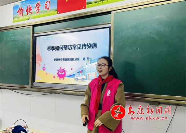 捐贈儀式后,安康市中醫(yī)醫(yī)院志愿者在教室內(nèi)開展了知識講座,為學(xué)生們講解了春季如何預(yù)防常見傳染病、七步洗手法等知識,孩子們聽得津津有味,并和志愿者積極互動(dòng)。