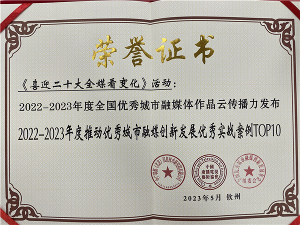 本網(wǎng)訊 5月12日,第五屆全國優(yōu)秀城市融媒創(chuàng)新發(fā)展年會暨2022-2023年度全國優(yōu)秀城市融媒云傳播力調(diào)研結(jié)果發(fā)布會在廣西壯族自治區(qū)欽州市舉行。安康日報社摘得四項大獎,其中,安康日報榮獲推動優(yōu)秀城市融媒綜合傳播力10佳;安康新聞網(wǎng)榮獲推動優(yōu)秀城市融媒創(chuàng)新發(fā)展綜合傳播力網(wǎng)絡(luò)媒體10佳;安康日報社黨委書記、社長王建獲評為推動優(yōu)秀城市融媒創(chuàng)新發(fā)展年度人物;《喜迎二十大媒體看變化》活動榮獲推動優(yōu)秀城市融媒創(chuàng)新發(fā)展優(yōu)秀實戰(zhàn)案例10佳。