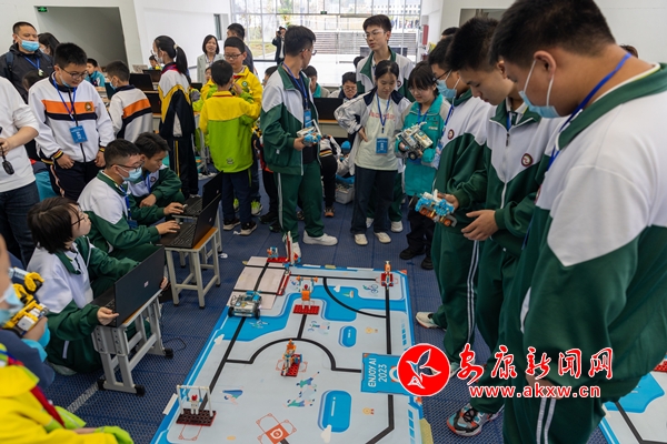 比賽現(xiàn)場,參賽選手們信心滿滿,全神貫注地編寫程序、調(diào)試機器人,根據(jù)競賽項目的任務要求相互協(xié)作配合,執(zhí)行相關任務,實現(xiàn)了多種創(chuàng)意,上演了一場精彩絕倫的“機器人大戰(zhàn)”。賽場上,選手們個個胸有成竹、思維敏捷、身手不凡,充分展示了同學們的科技創(chuàng)新和動手實踐能力,為全市中小學人工智能及教育信息化工作寫下濃墨重彩的一筆。