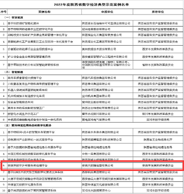 本網(wǎng)訊(通訊員 張騫)近日,陜西省發(fā)展和改革委員會(huì)發(fā)布了《關(guān)于公布2022年度陜西省數(shù)字經(jīng)濟(jì)典型示范案例的通知》,由安康市發(fā)改委推薦,中國建設(shè)銀行援建,安康大數(shù)據(jù)公司承建的“安康市數(shù)字鄉(xiāng)村服務(wù)與治理平臺(tái)”成功入選。