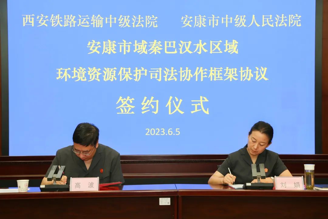 6月5日,安康市中級(jí)人民法院攜手西安鐵路運(yùn)輸中級(jí)法院,舉行《安康市域秦巴漢水區(qū)域環(huán)境資源保護(hù)司法協(xié)作框架協(xié)議》簽約儀式,共同擘畫建設(shè)秦巴漢水生態(tài)安全屏障“同心圓”。