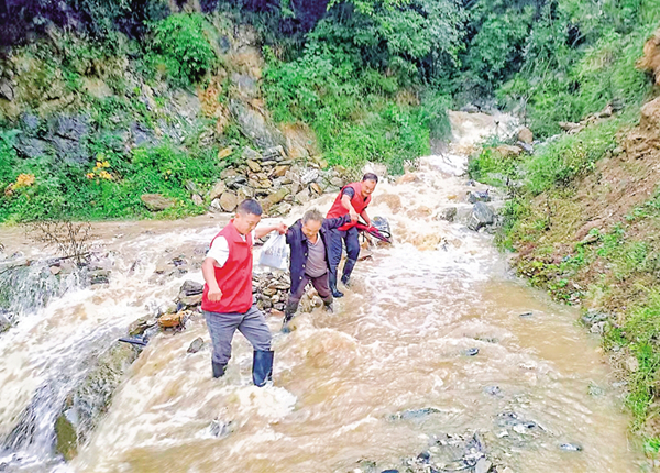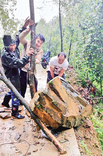 ⇑ 9月19日,石泉縣曾溪鎮(zhèn)境內(nèi)普降大雨,駐村工作隊連同大溝村干部下沉一線排險搶險。文倩 丁浩哲 攝